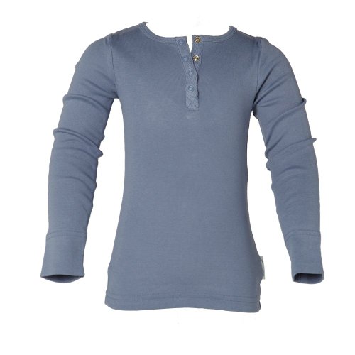 Mini A Ture Mico Slate Blue Fitted Cotton Long Sleeved T-Shirt Top with Popper Buttons at Neck. 100% Cotton.